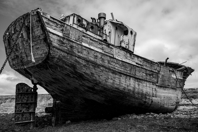 Photo : Photographie 30x20cm noir et blanc d'une célèbre épave de bateau à Camaret en Bretagne.